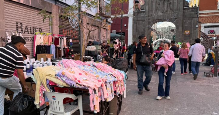 Comercio informal, presente en la calle 5 de Mayo