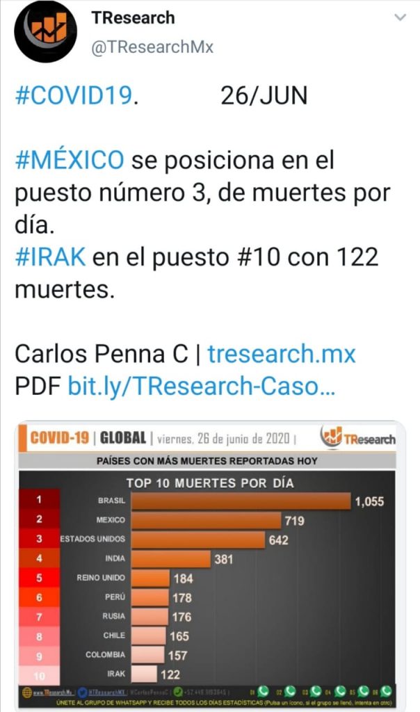 Por Roy Campos #COVID19 26/JUN Se anexa *PDF* completo con: -Top 20 contagios mundiales -Top