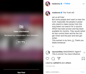 Madonna comparte teoría conspirativa sobre el covid y la censuran