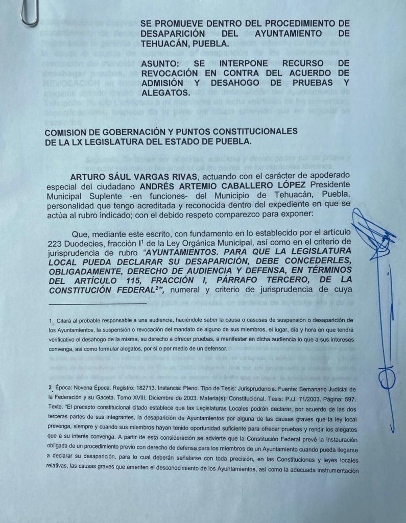 Jorge Barrientos Saúl Vargas Rivas, representante legal del edil en funciones de Tehuacán, Andrés Artemio