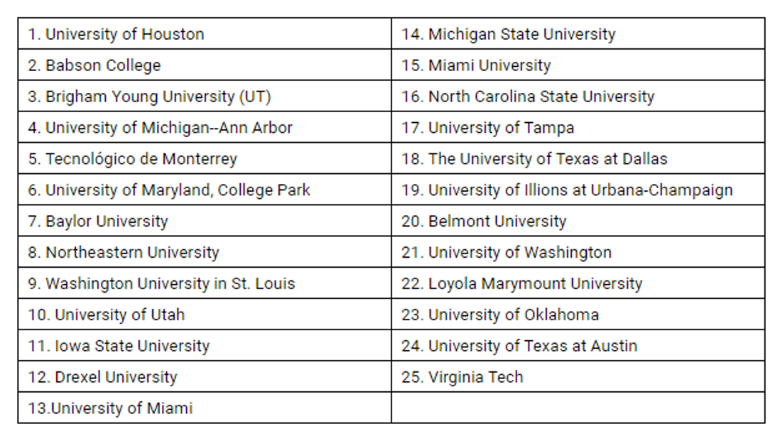 Top 25 Universidades con Programas de Emprendimiento de Licenciatura