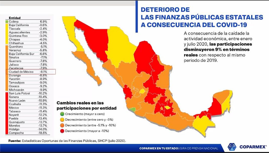 El líder empresarial local afirmó que el impacto económico total de las propuestas es de 9 mil 445 mil millones de pesos, lo que representa el 76 por ciento del monto total de los subejercicios registrados al tercer trimestre de 2020, lo que es apenas el 4 por ciento del gasto anual aprobado para el 2020 en la capital de la República.