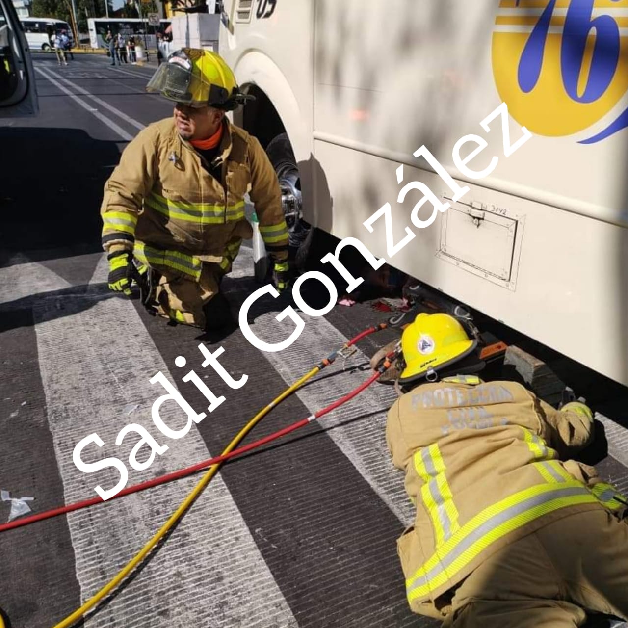 La mujer quedó atrapada debajo de la unidad del transporte público por más de una hora, hasta que fue rescatada por paramédicos y personal de Protección Civil.