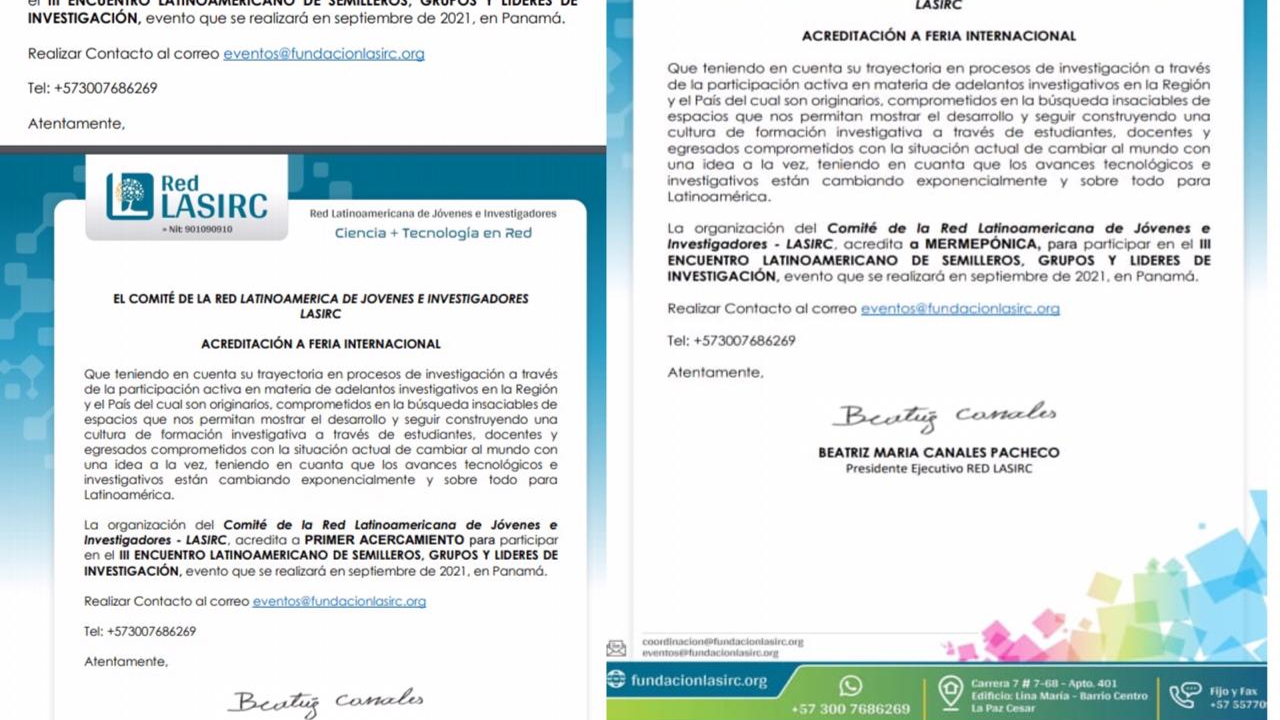 Acreditaciones de los proyectos para participar en el “Encuentro latinoamericano de semilleros, grupos y líderes de investigación”, a realizarse en PANAMÁ, en Septiembre de 2021.