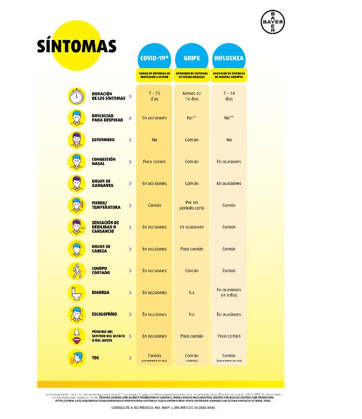 Compartimos una infografía que ayudará a tus lectores para poder diferenciar los síntomas entre covid, gripe e influenza.