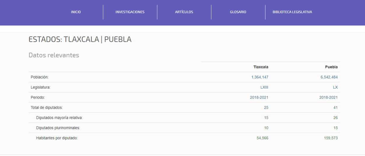 LEGISLATURAS ESTATALES DE PUEBLA Y TLAXCALA; EL COMPARATIVO