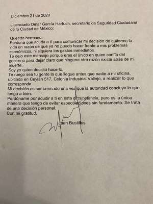 El periodista, director y dueño de la revista “Impacto”, Juan Bustillos, falleció el lunes y dejó una carta póstuma dirigida al secretario de Seguridad Ciudadana de la Ciudad de México, Omar García Harfuch, a quien le explica por qué decidió suicidarse.