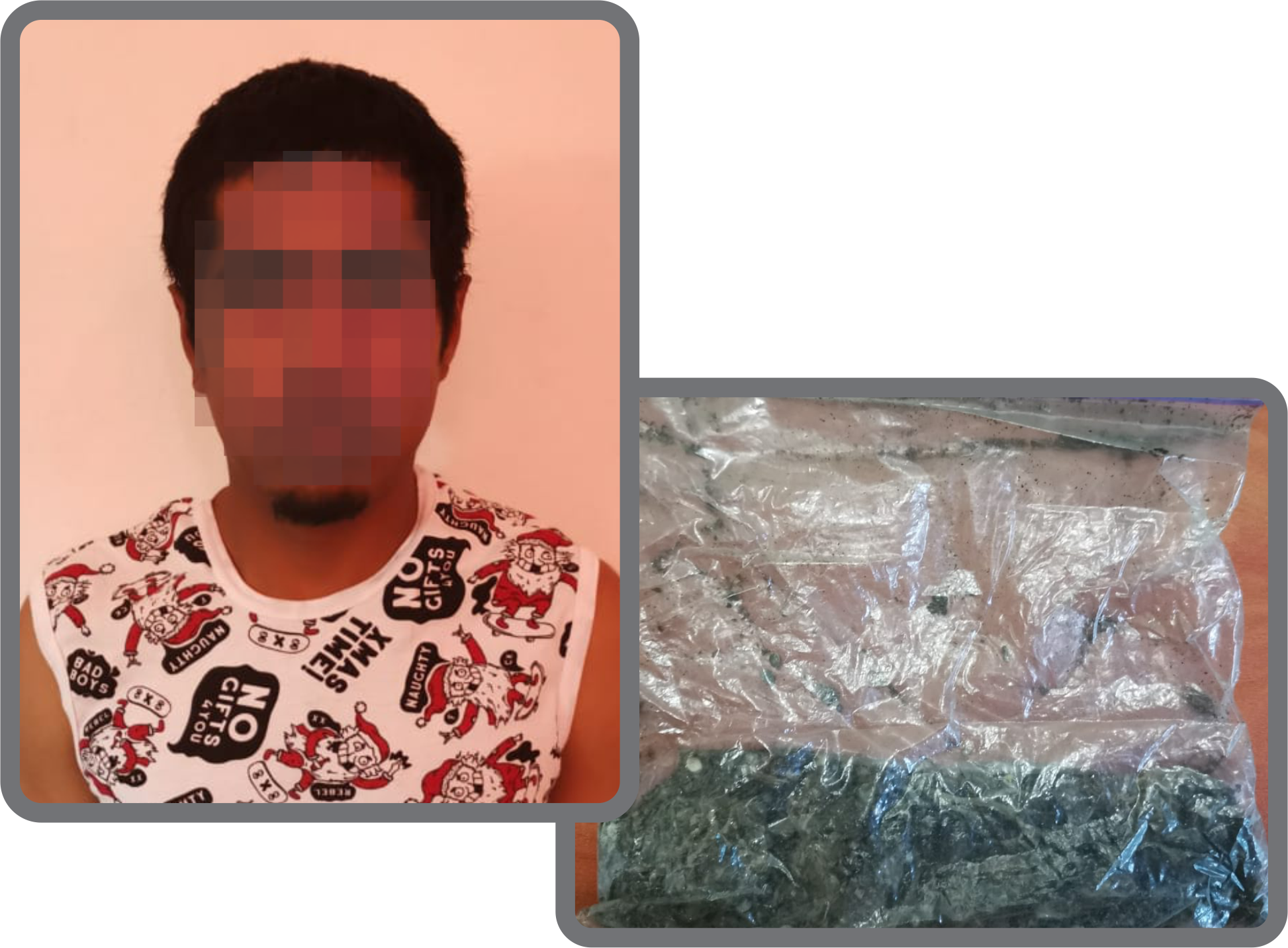 Por lo que, personal de seguridad procedió a la averiguación de su comportamiento, tras indagar a la persona esta se identificó como David N., de 31 años de edad, a quien al momento de realizarle una inspección preventiva se le localizó entre sus pertenencias una bolsa de plástico que contiene hierba seca color verde con las características propias de la marihuana.