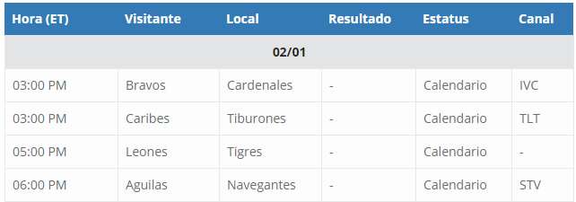 La Liga Venezolana de Beisbol Profesional detiene sus actividades por las fiestas de Año Nuevo y regresará a la acción el sábado 02 de enero con estos 4 encuentros:
