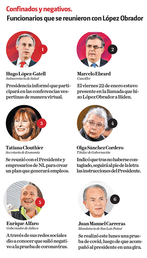 Pandemia. Las pruebas de los gobernadores Carreras, Alfaro y Rodríguez Calderón, quienes estuvieron en contacto con el tabasqueño, salieron negativas; el canciller y la titular de Segob repetirán los test