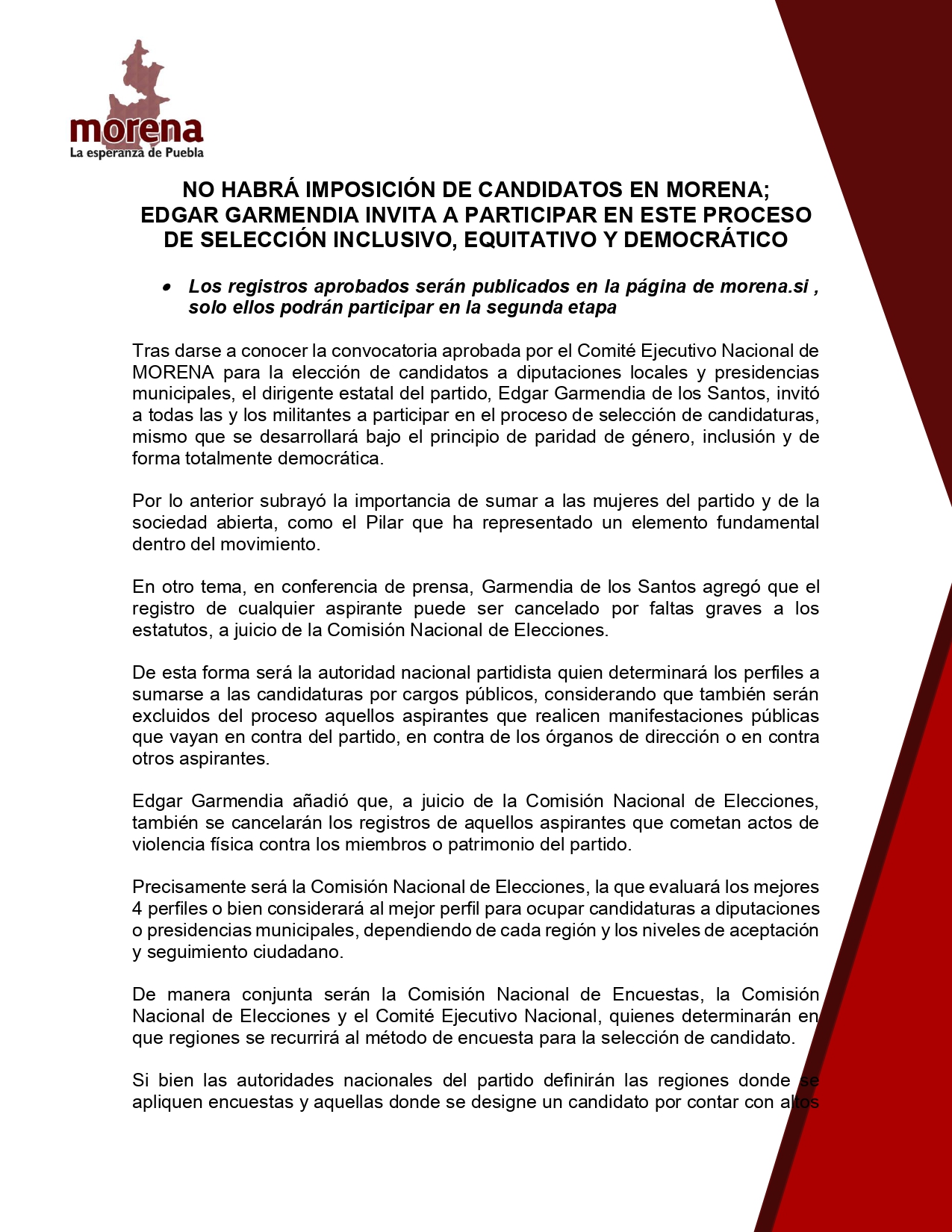 No habrá imposición de candidatos en MORENA; Edgar Garmendia invita a participar en este proceso de selección inclusivo, equitativo y democrático