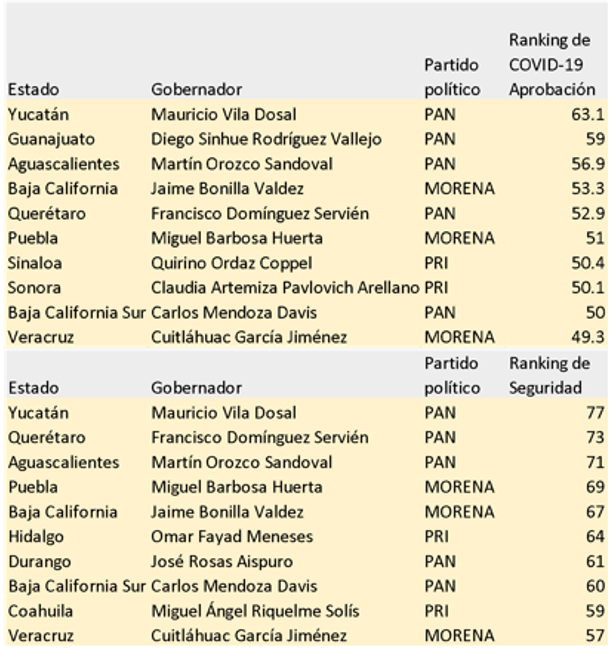 C&E RESEARCH y Demotáctica realizaron el 11º Ranking de gobernadores de México, en la que se midió la honestidad, seguridad y desempeño ante covid-19, de las cuales se obtuvo un promedio final de las calificaciones otorgadas por los ciudadanos.