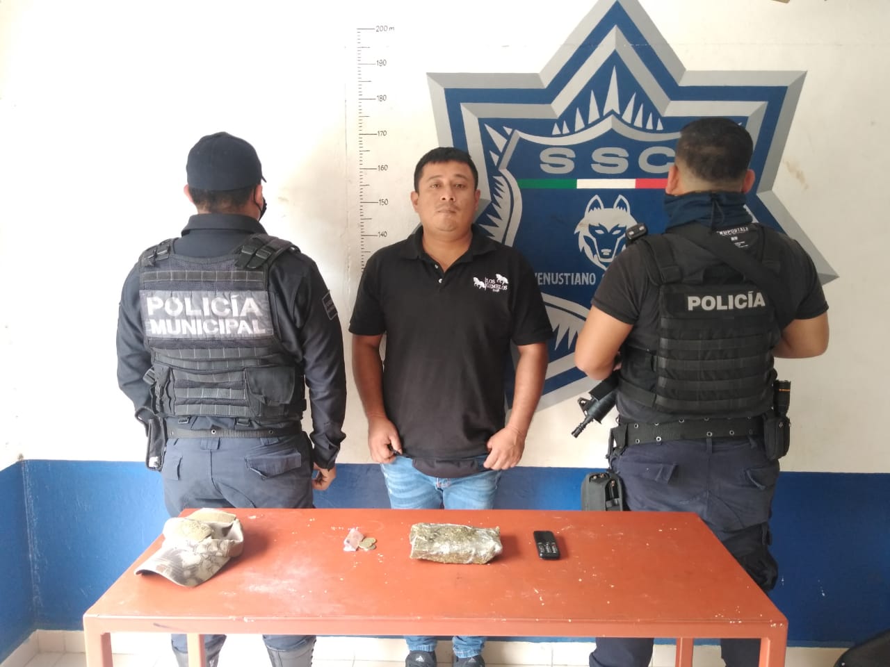 Por este hecho, los elementos de la policía municipal detuvieron la circulación de la unidad y al aplicarle una revisión preventiva a los pasajeros ubicaron a un hombre que llevaba consigo un paquete con al menos 400 gramos de marihuana.