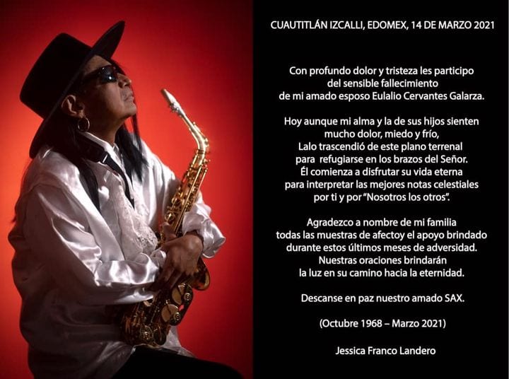 La mañana de este domingo 14 de marzo trascendió a la eternidad Sax quien fue integrante fundador de la emblemática banda de rock-ska Maldita Vecindad y los Hijos del Quinto Patio y quien también es reconocido por ser un brillante compositor.