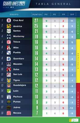 El Guardianes 2021 comienza a tomar forma tras concluir este lunes la jornada 11. Cruz Azul continúa como líder general del torneo tras derrotar por la mínima a Monterrey, gracias a un gol de Roberto Alvarado.