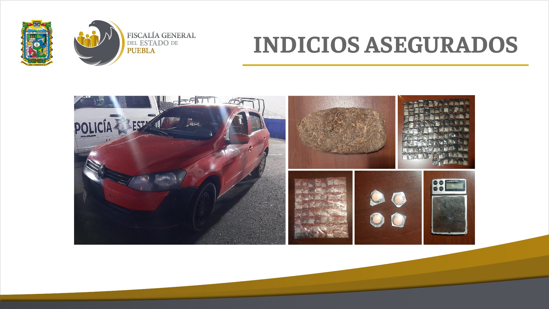 Elementos de la Policía Estatal realizaron la detención de las personas el 10 de marzo de 2021 en la colonia Santa Lucía de la ciudad de Puebla, luego de que les hallaran más de 180 dosis de aparente cristal, una bolsa de un peso aproximado de medio kilo y 24 envoltorios de hierba verde con características de la marihuana, una báscula, entre otros indicios.