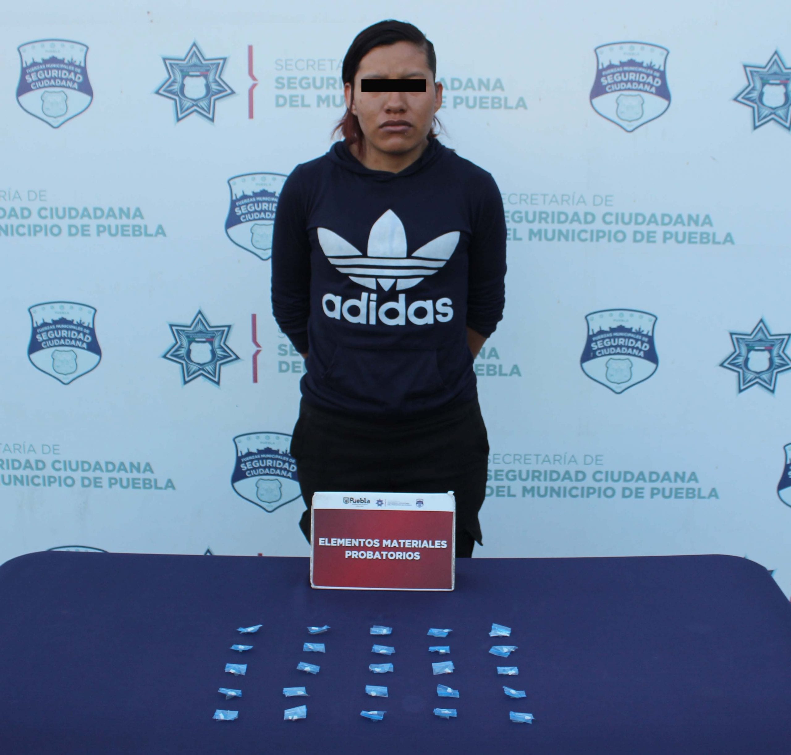 Como resultado del reforzamiento de la Estrategia de Vectores de Proximidad, la Secretaría de Seguridad Ciudadana (SSC) del Municipio de Puebla detuvo en la colonia La Loma a Ingrid “N.” de 20 años de edad, por su probable participación en hechos con apariencia de delitos contra la salud.