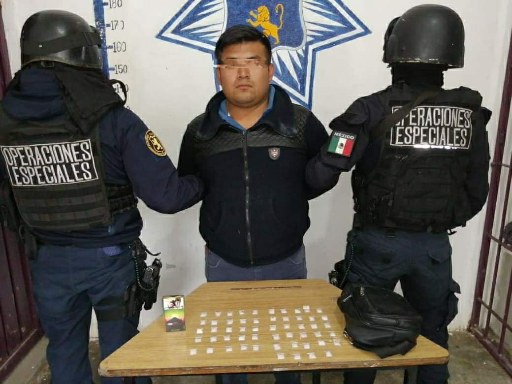 La dirección de seguridad pública a través del grupo GOESH, realizó la detención de Daniel “N”, quien es señalado como el principal distribuidor de drogas en la colonia centro de Huauchinango, la detención y aseguramiento se realizaron en la calle Matamoros, al momento de su detención llevaba en posesión una mariconera con 54 bolsitas con la droga conocida como “cristal”, por lo que se procede a ponerlo a disposición de las autoridades correspondientes.