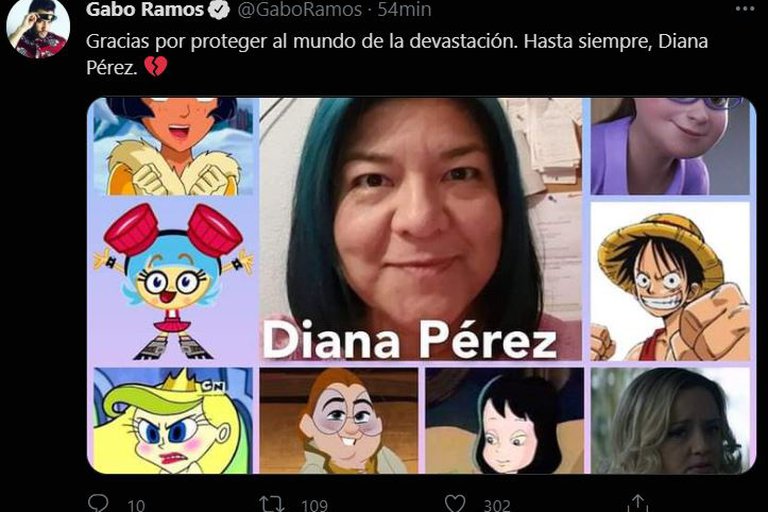 “Con profundo dolor informamos que la actriz y directora de doblaje Diana Pérez ha fallecido. La eterna voz de Jessy del equipo Rocket. Descanse en paz”, escribió la página en redes sociales.