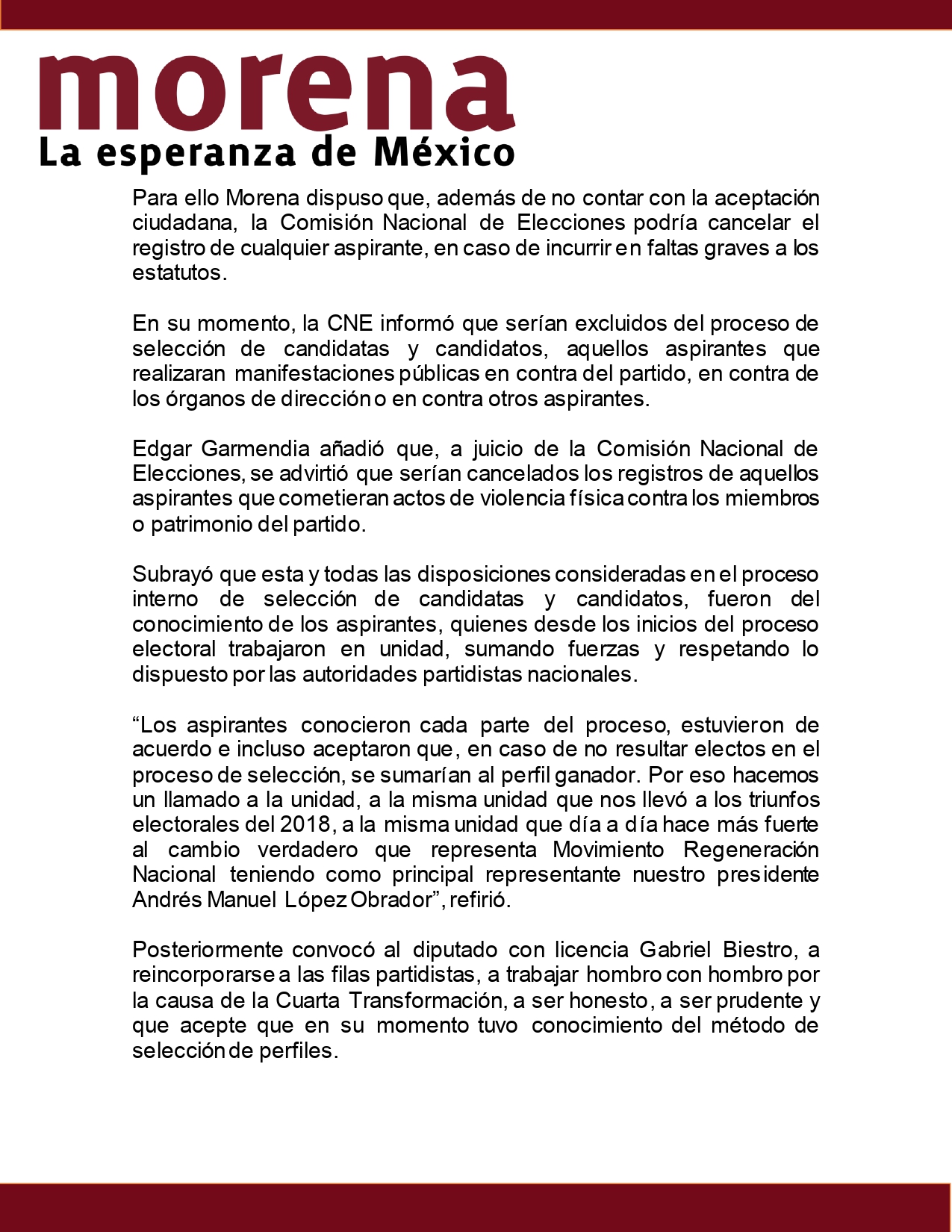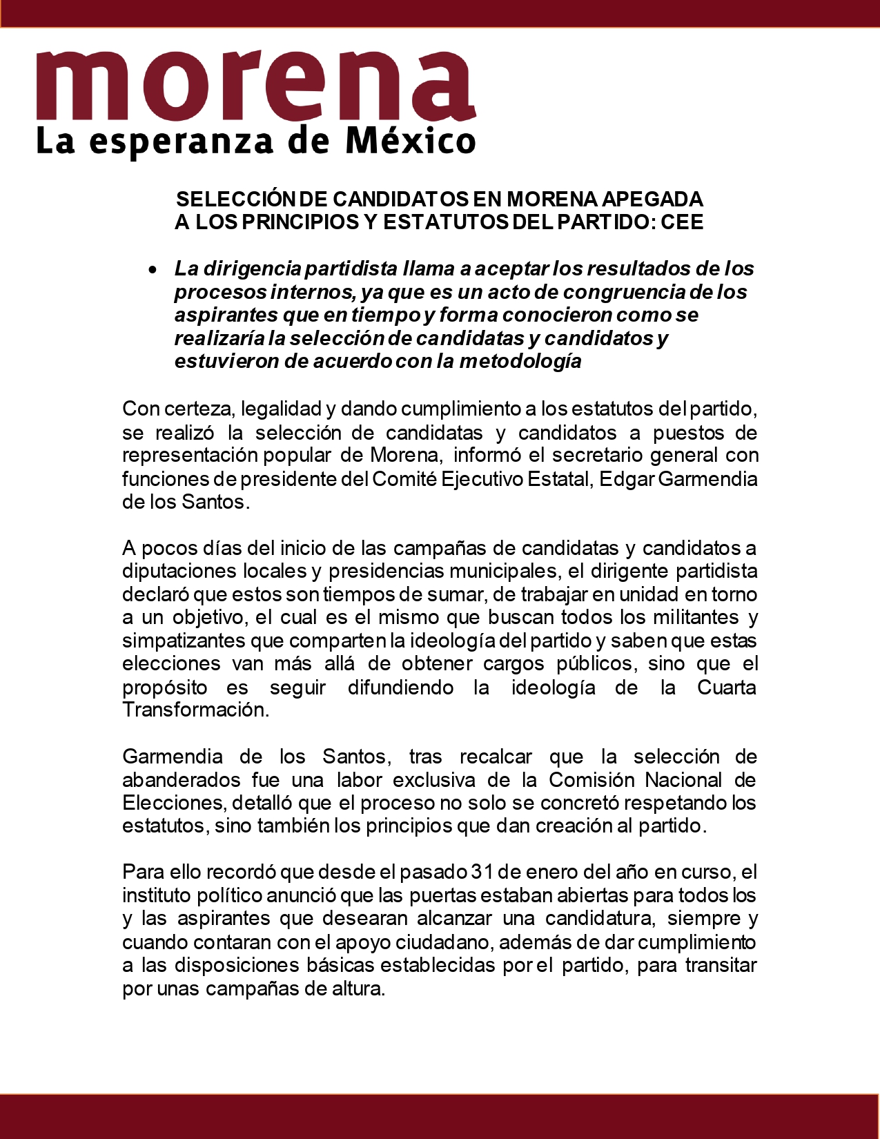 Selección de candidatos en Morena apegada a los principios y estatutos del partido: CEE