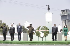 Tras una salva de fusilería a cargo del personal del 9º Regimiento Blindado de Reconocimiento de la XXV Zona Militar, el gobernador Miguel Barbosa Huerta depositó una ofrenda floral e hizo guardia de honor al pie del Mausoleo erigido en memoria al General Ignacio Zaragoza en la zona de Los Fuertes.