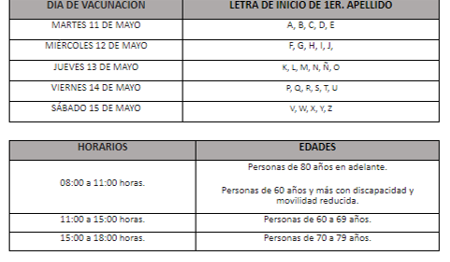 Las instituciones invitan a las poblanas y poblanos a respetar los lineamientos establecidos, como son: horario por grupo de edad y fecha con base en la letra inicial del primer apellido.