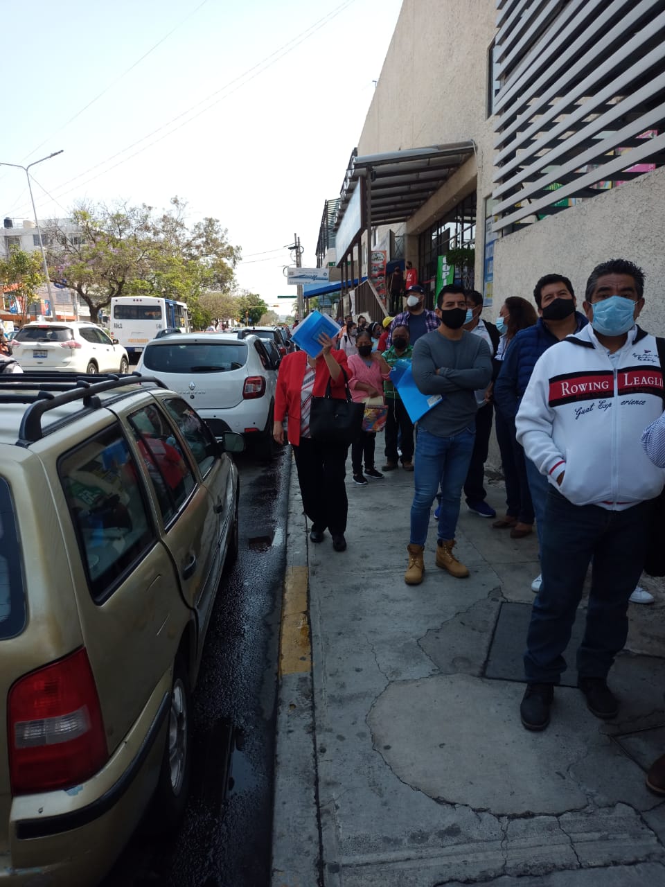 A las 12 y 20 le marcó por teléfono a Miguel para preguntarle si ya venía con el documento. Me contestó que estaba en camino y, por fin, comencé a relajarme. Un empleado de la secretaría de Movilidad del ayuntamiento de Puebla revisa los papeles de algunos para ver si están completos, mientras un hombre con chaleco guinda del gobierno federal aclara que solamente se necesitan 3 papeles para ser inmunizado: Curp, comprobante domiciliario…y el infeliz expediente de vacunación.