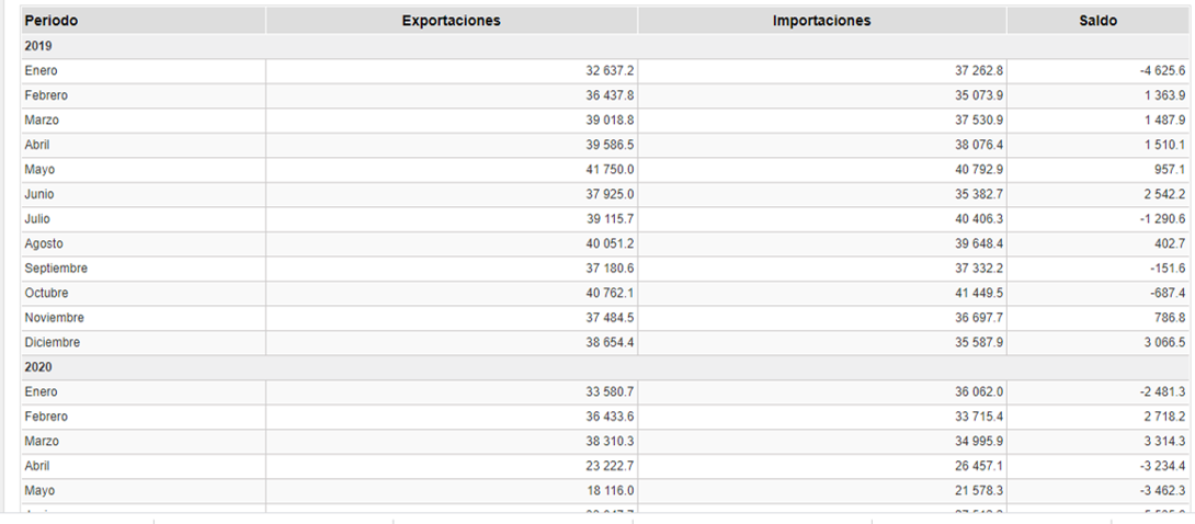 - Resumen de la balanza comercial de mercancías de México