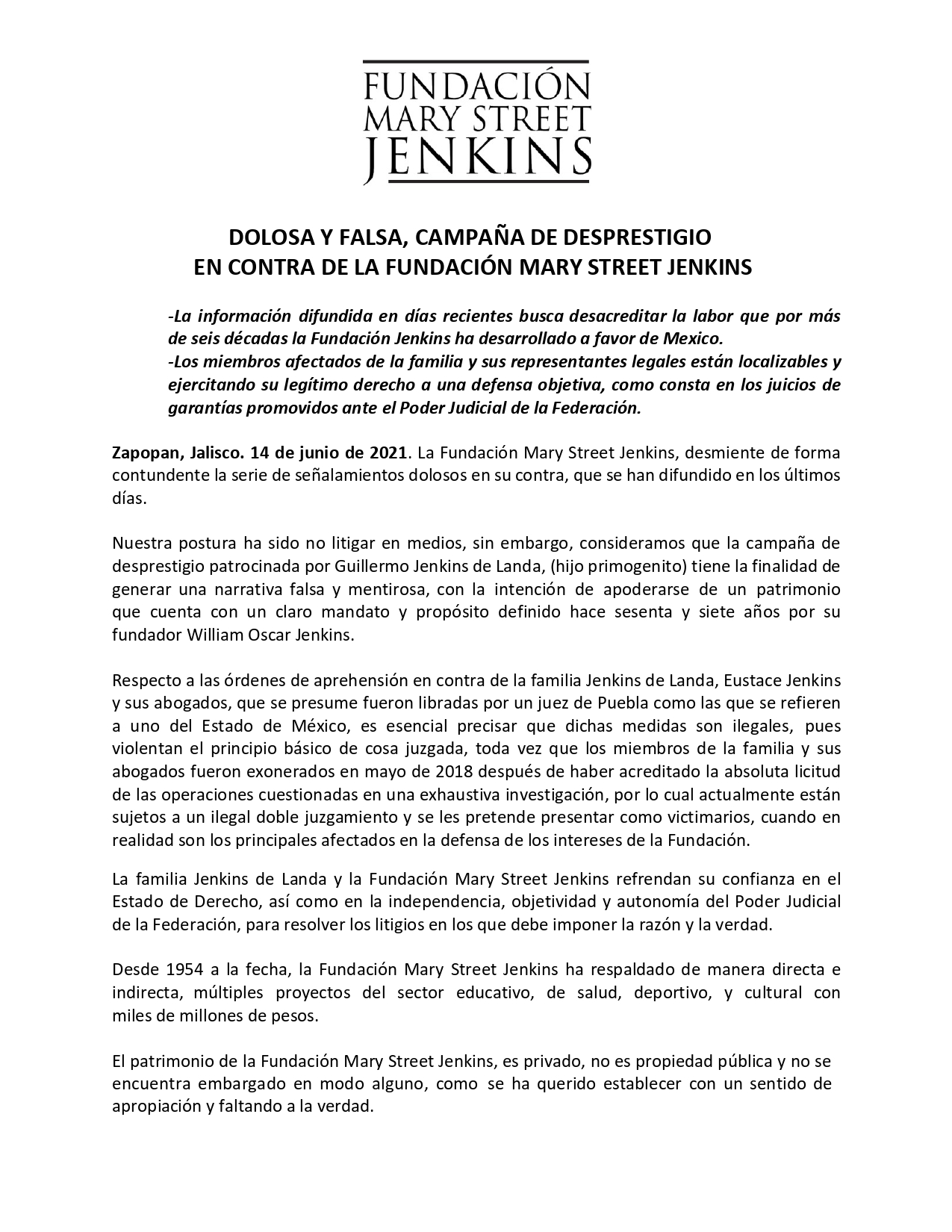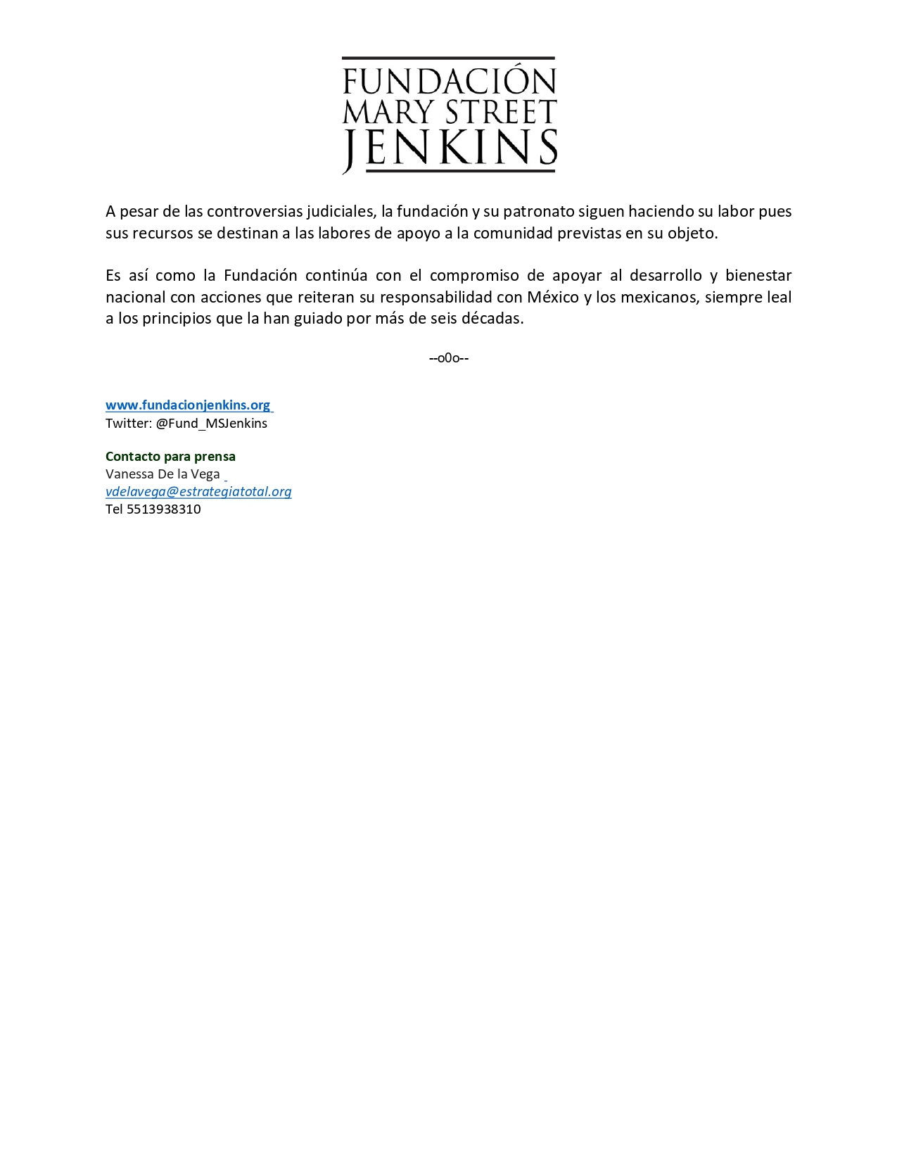 Dolosa y falsa, campaña de desprestigio en contra de la Fundación Mary Street Jenkins