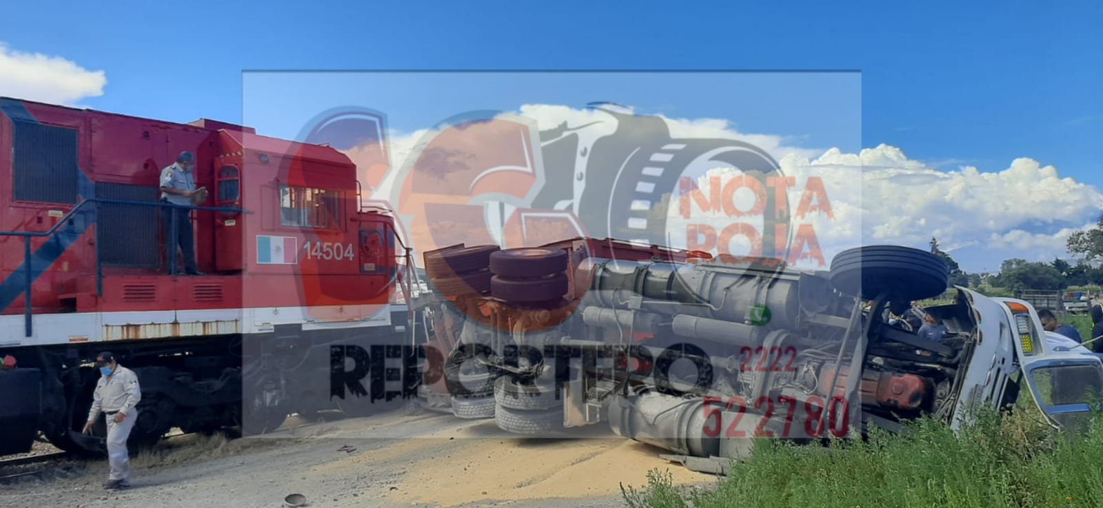 Un tráiler fue arrastrado por el tren en la carretera Azumbilla-El Seco a la altura de Cañada Morelos.