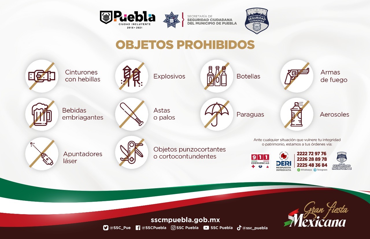 Asimismo, se colocarán arcos detectores de metal en los diferentes accesos al corazón de la ciudad y no se permitirá el acceso a las personas que porten cinturones con hebilla, bebidas embriagantes, botellas de vidrio, sombrillas objetos punzocortante, explosivos, palos y aerosoles.
