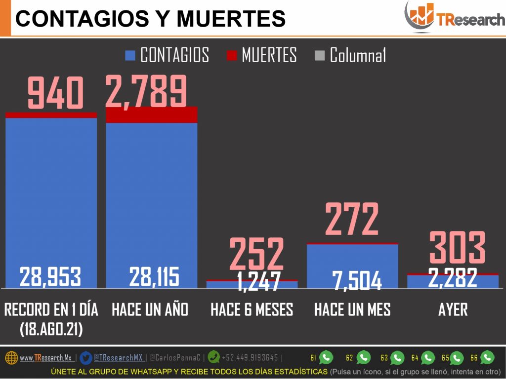 Por Roy Campos #MEXICO CASOS: 3,691,924 HOY: 7,682 MUERTES: 332,130 HOY: 790 *TOP CONTAGIOS TOTAL*