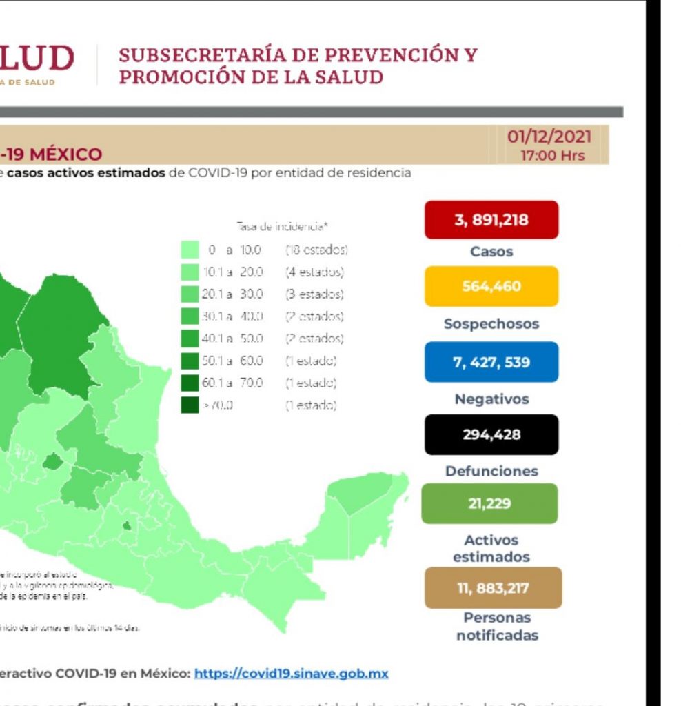 María Huerta México arranca el mes de diciembre con 294 mil 428 decesos por covid-19,