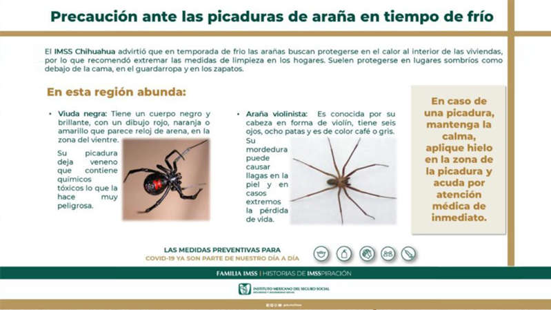 El Instituto Mexicano del Seguro Social (IMSS) en Chihuahua advierte a la población sobre la proliferación de arañas en temporada de frío.