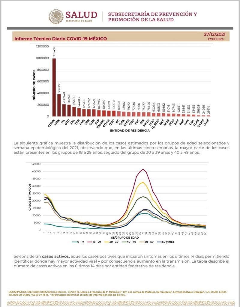 RDS/Staff Al 27 de diciembre de 2021, a nivel mundial se han reportado 279,114,972 casos