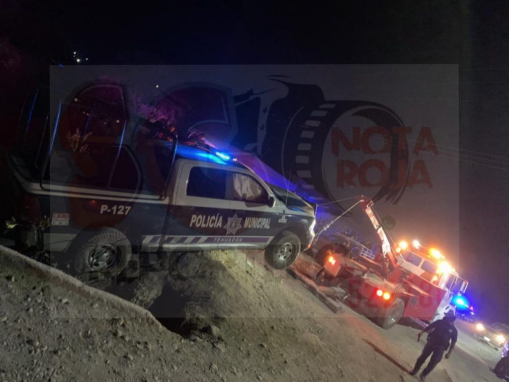 Sadit González Dos elementos de Seguridad Pública de Tehuacán resultaron lesionados al volcar la unidad