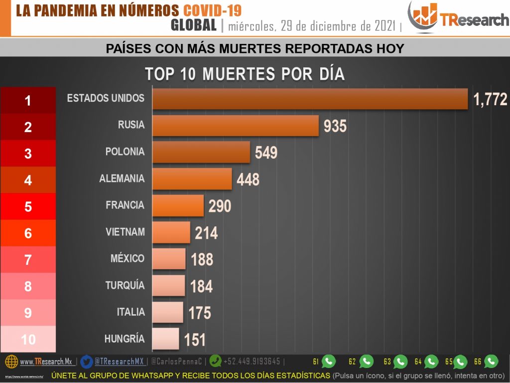 Por Roy Campos #MEXICO CASOS: 3,961,662 HOY: 5,290 MUERTES: 351,366 HOY: 188 *TOP CONTAGIOS TOTAL*