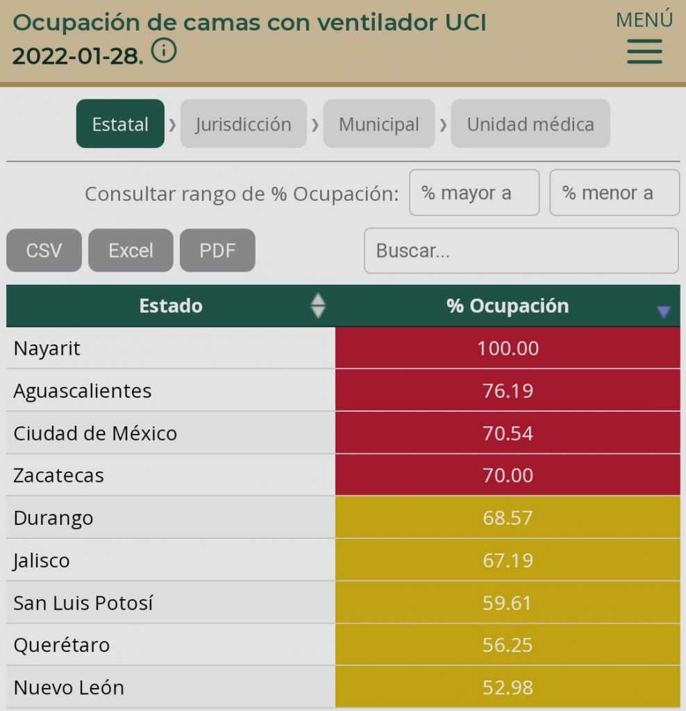 CdMéx, Aguascalientes, Nayarit. entre los estados con mayor ocupación hospitalaria: Red Irag