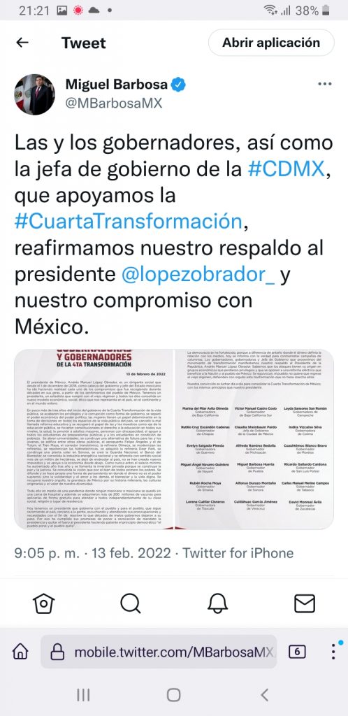RDS/STAFF Mediante su cuenta de Twitter, el gobernador Miguel Barbosa Huerta compartió el desplegado de