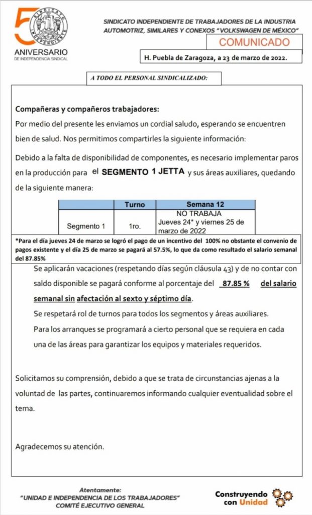 Jorge Barrientos El Sindicato Independiente de Trabajadores de la Industria Volkswagen (SITIAVW), a través de