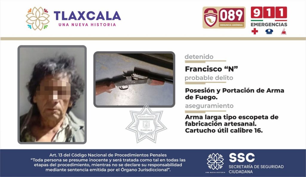 Staff/Rossi El detenido portaba un arma de fuego tipo escopeta calibre 16 con un cartucho