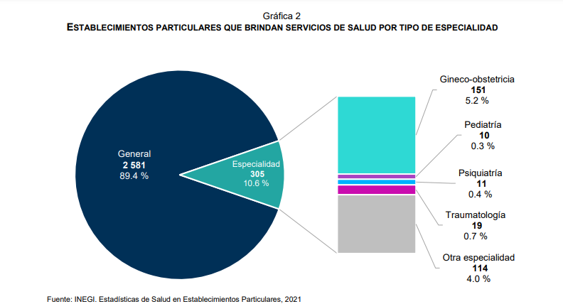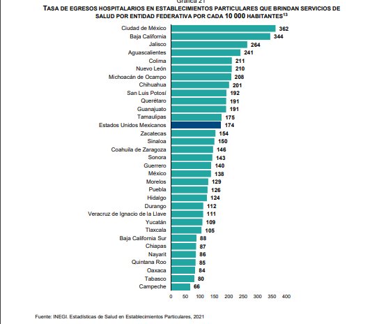 Así que el INEGI no hizo más que corroborar lo que todos sabemos; es decir, que el estado y principalmente su capital, cuenta con muchos hospitales privados: En México, siete entidades federativas concentraron 53 % de los 2 886 establecimientos particulares que prestan servicios de salud