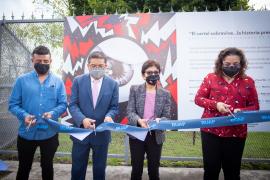 Más tarde, la Rectora Lilia Cedillo —en compañía de la doctora Santiago Azpiazu, así como Obed Meza y Alejandro Varela, organizadores de esta muestra—, realizó un recorrido por esta exposición ubicada en la valla perimetral del bulevar Valsequillo.