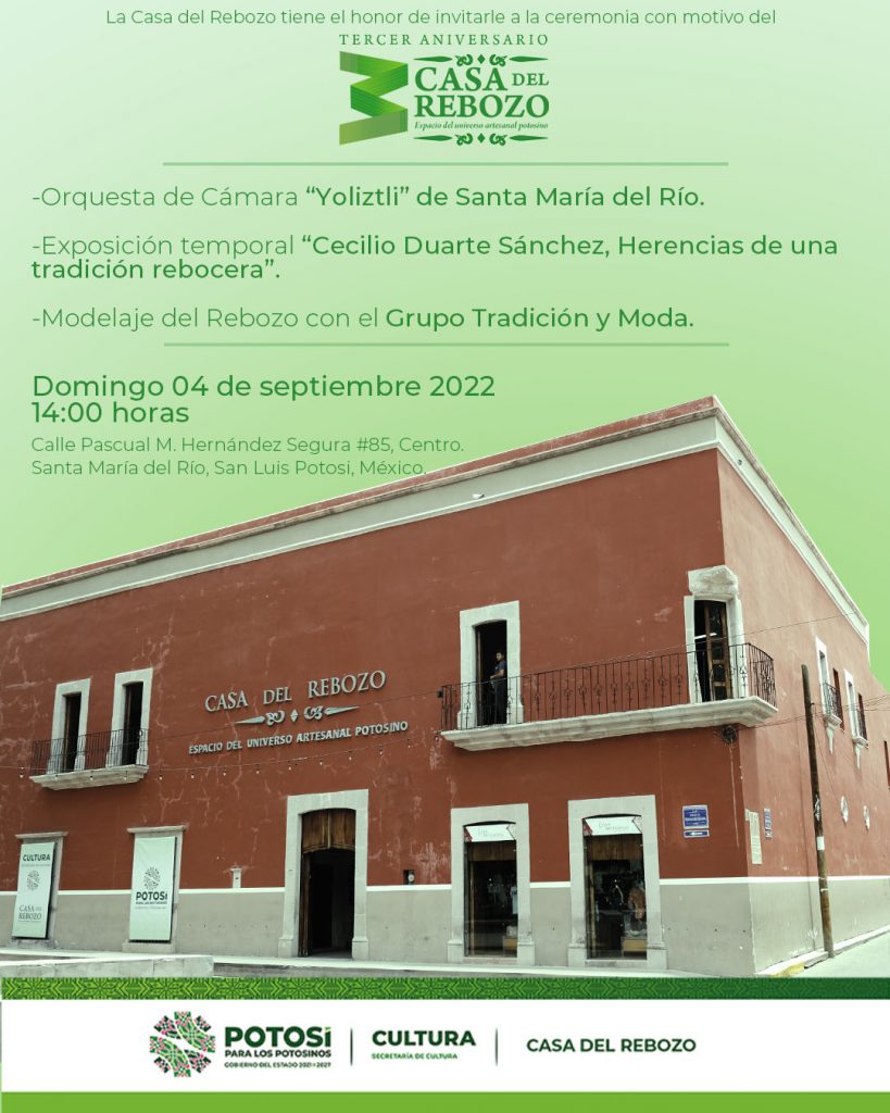 Museo Casa del Rebozo celebrará su 3er aniversario