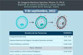 Al día siguiente, 9 de septiembre, se realizará de forma virtual el taller Estrés oxidativo, a cargo del doctor Gregorio Martínez Sánchez, presidente del Comité Científico Internacional para la Ozono Terapia, de la Universidad Saint George, Italia, de 9:00 a 18:00 horas. El taller abordará conceptos y mecanismos moleculares actuales sobre el estrés oxidativo, su relación con la nutrición, las enfermedades crónicas, el diagnóstico e intervención con ozono terapia.