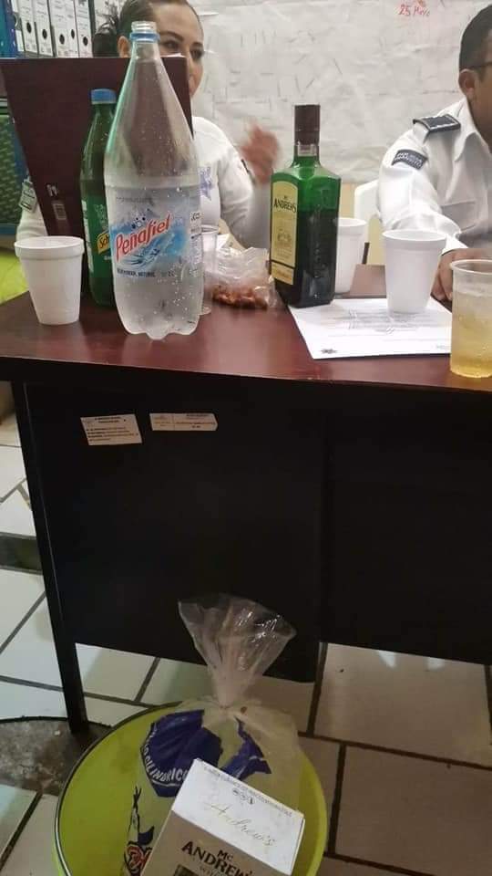 Mediante unas imágenes se puede observar a los tránsitos con el uniforme oficial y botella de licor en el escritorio.