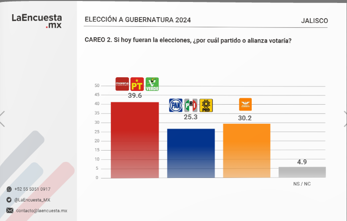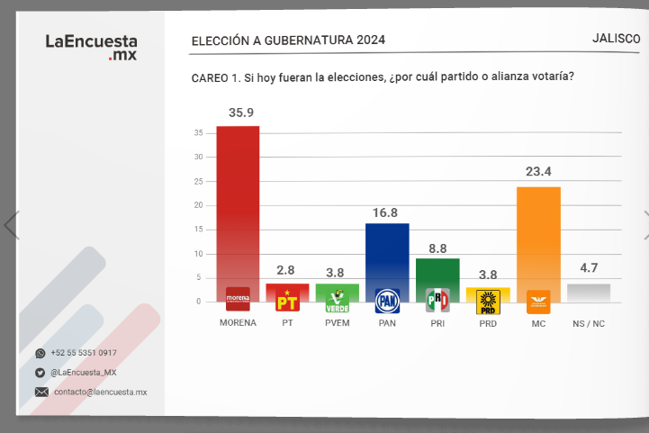 Incluso, aunque los representantes de MC buscaran una coalición con el lopezobradorismo para tierras jaliscienses, es altamente probable que fueran rechazados, ya que todo apunta a que la coalición del presidente y sus aliados puede ganar sola uno de los estados más atractivos, no solo por su importancia socio-cultural, sino con un abultado padrón electoral.
