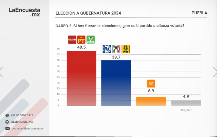 PUEBLA: MORENA ADELANTE, PERO POR MENOS DE 10 PUNTOS
