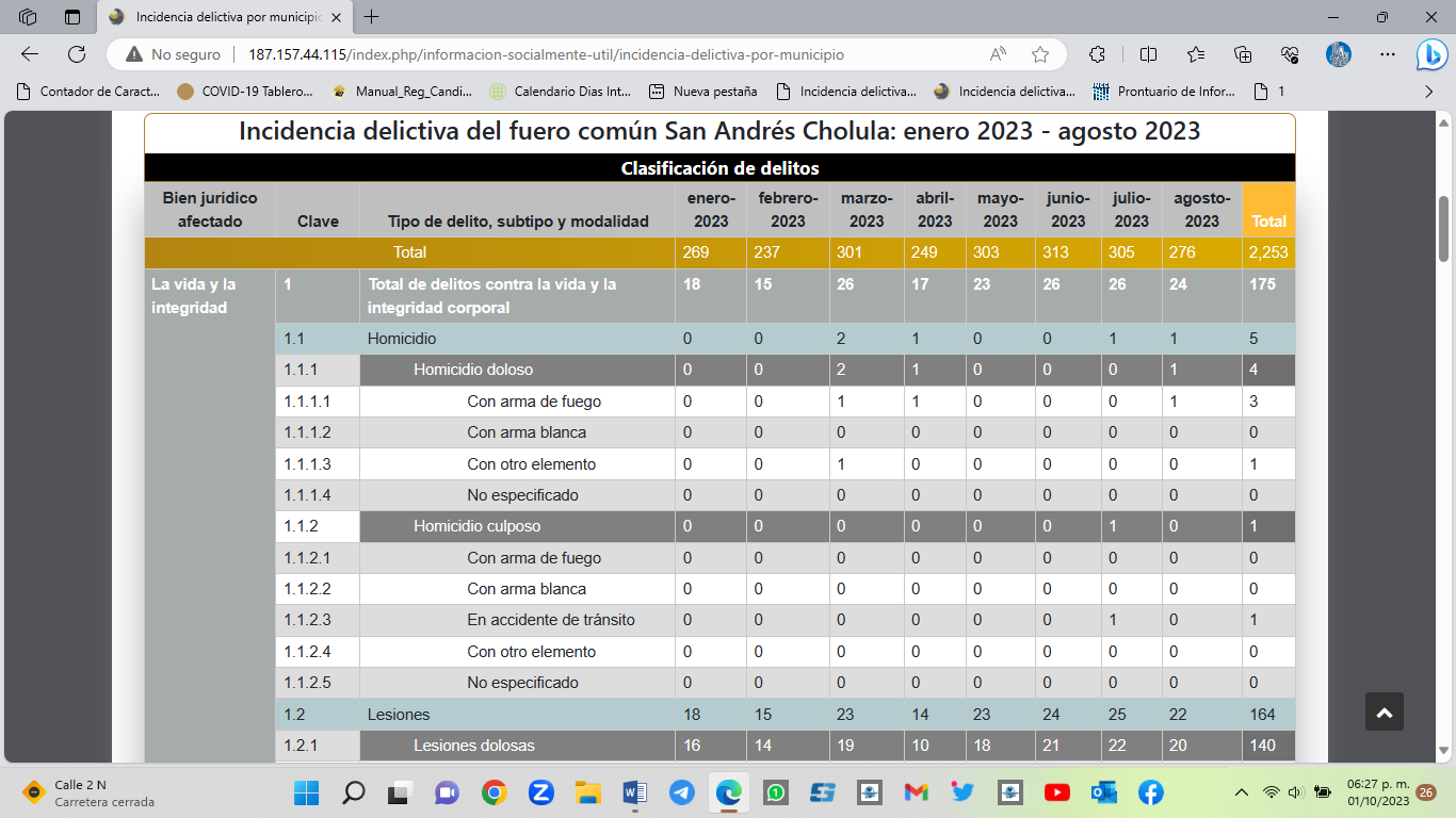 Respecto a felonías contra el patrimonio, el robo en todas sus vertientes, en 2022 se habían interpuesto mil 314 denuncias, que este año se elevó a mil 366 ataques registrados oficialmente:Mundo Tlatehui: La reelección sí es prioritaria, la seguridad de San Andrés Cholula, no