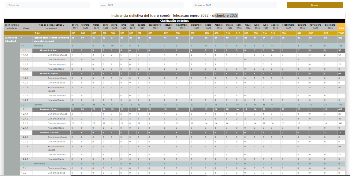 Incidencia delictiva del fuero común Tehuacán: enero 2022 – diciembre 2023